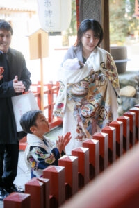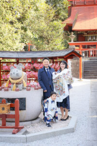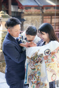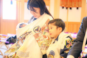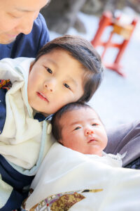 今回のお宮参りは、主役の赤ちゃんに加えて、3歳のお兄ちゃんの七五三のお祝いも兼ねた、大切な一日。