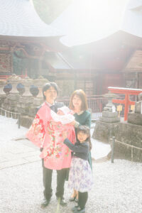 今回は、産泰神社で行われた生後100日の女の子のお宮参りロケーション撮影をご紹介します。